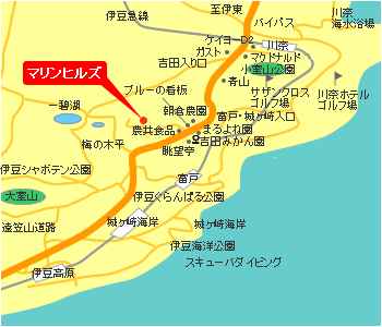 国道135号を伊東駅より下田方面へ約8km、バス停「吉田みかん園」を右折、急坂の頂上。 ※ローギアで