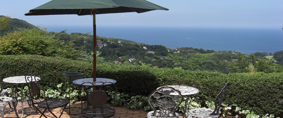 伊東駅よりバスで20分「吉田みかん園」下車、急坂を徒歩7分。 タクシーの場合、川奈駅より7分(1400円程度) ※バス停からの坂がきつい為、タクシーをお勧めします。
